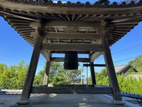 泊清寺ハワイ移民の寄進による梵鐘(山口県周防大島町沖神室島、1950年)。ハワイ移民(ホノルル)の夫婦から1950年(「昭和艹五年五月」と記載あり)に寄進された梵鐘(石台を含む)が確認できる